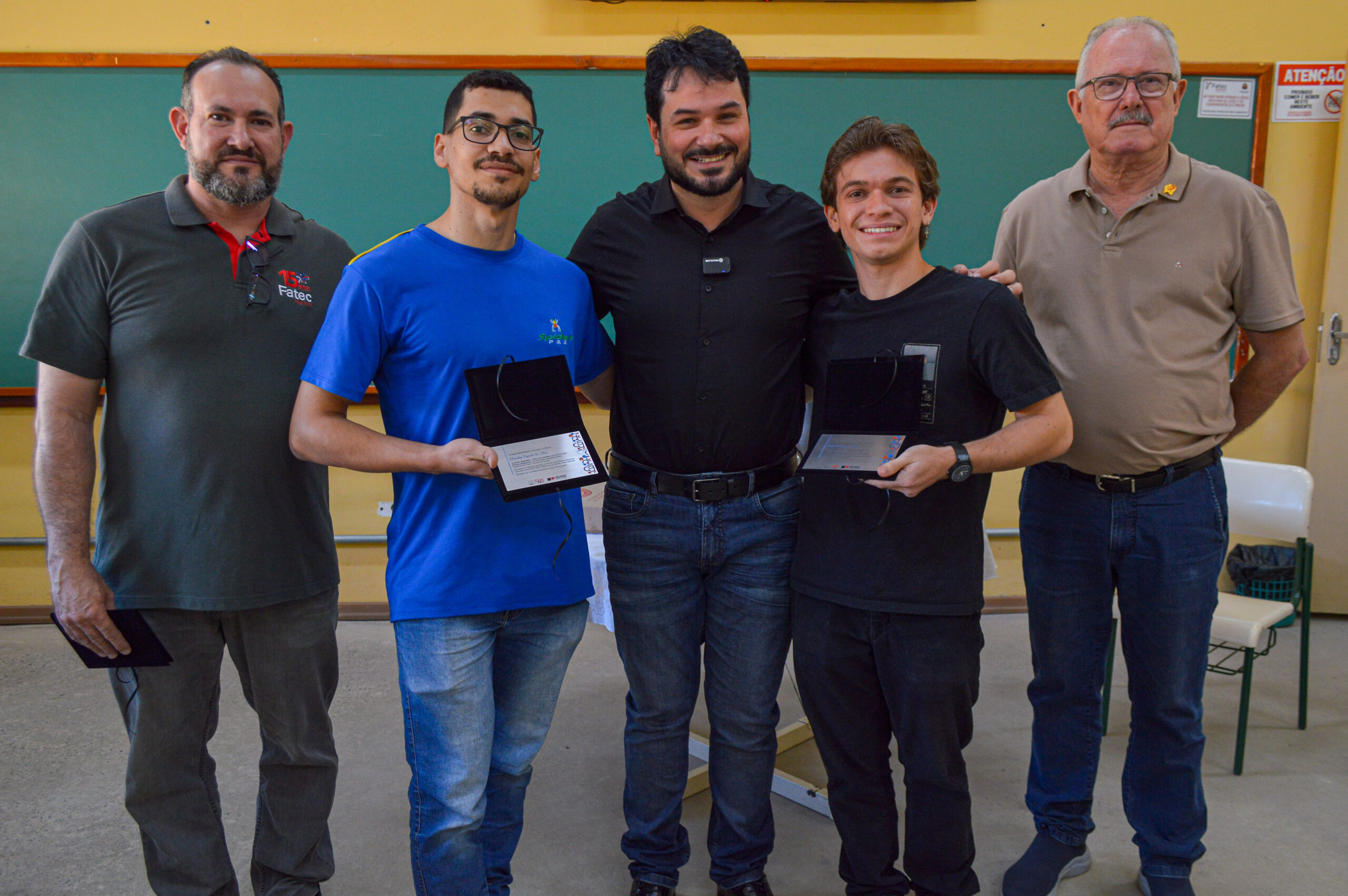 Nesta quinta-feira (18), os estudantes receberam uma homenagem na Fatec Mogi Mirim. O vice-presidente do CPS, Maycon Geres, entregou placas de honra ao mérito aos autores do projeto. O diretor da unidade, Cesar Eduardo Soares, e o professor e coordenador de estágio, Eliandro Rezende da Silva, que orientou os alunos durante o desenvolvimento, também foram homenageados.