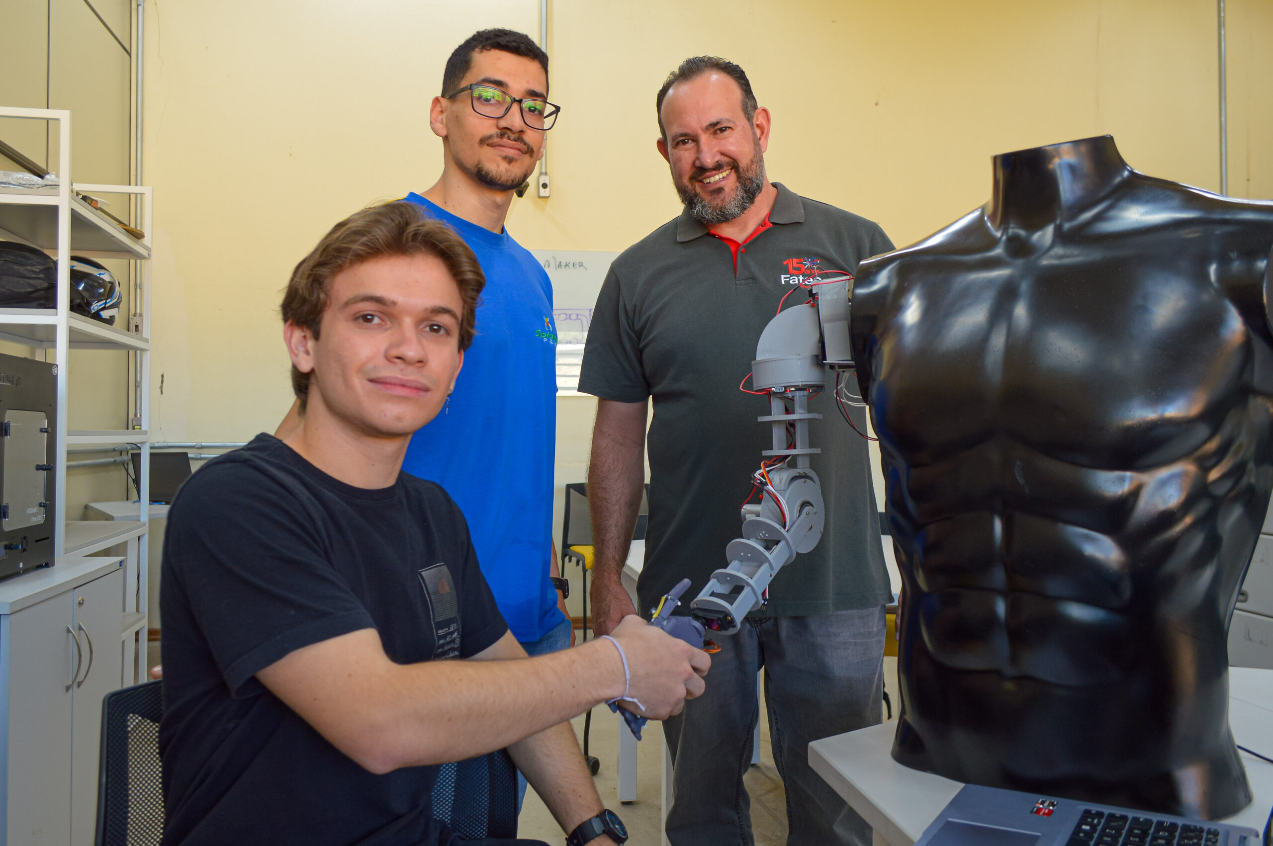 Os estudantes apresentarão o projeto Prótese Inteligente, desenvolvido para pessoas com amputações de braço na altura do ombro ou que nasceram sem o membro. O protótipo permite a rotação do punho, o movimento do cotovelo, além de movimentos laterais e frontais do braço.
