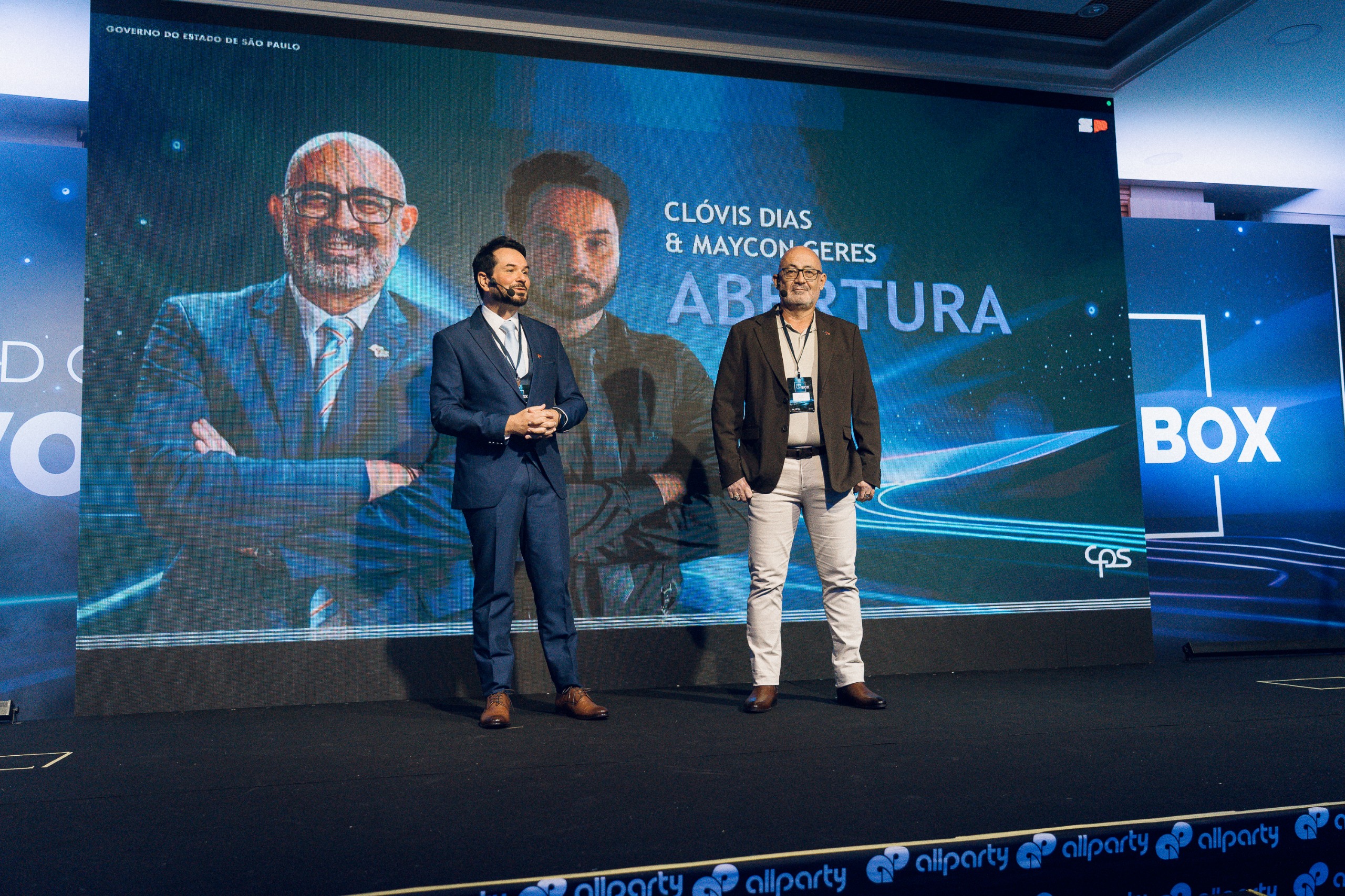 A abertura do evento foi conduzida por Clóvis Dias e Maycon Geres, presidentes do Centro Paula Souza | Foto: Matheus Avelar