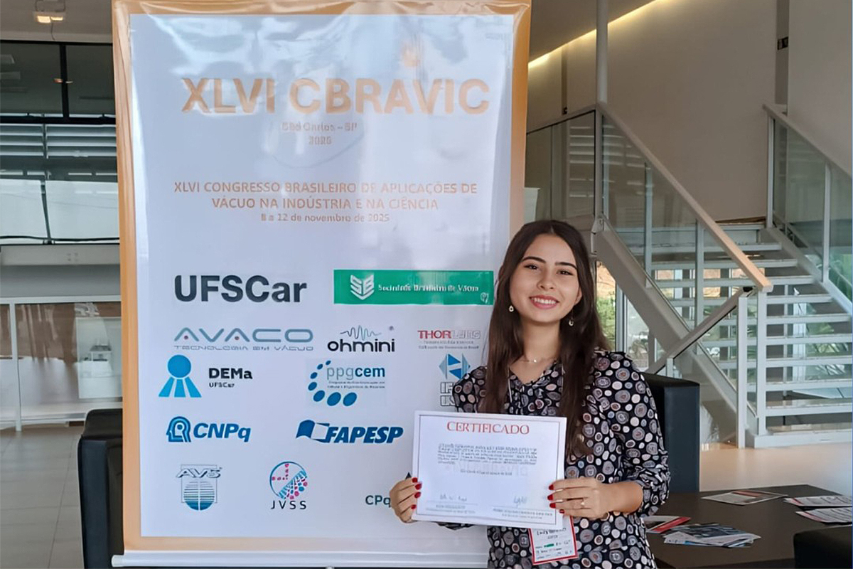 Pesquisa de Emily competiu com trabalhos de alunos de graduação e pós, conquistando prêmio no Congresso Brasileiro de Aplicações de Vácuo na Indústria e na Ciência