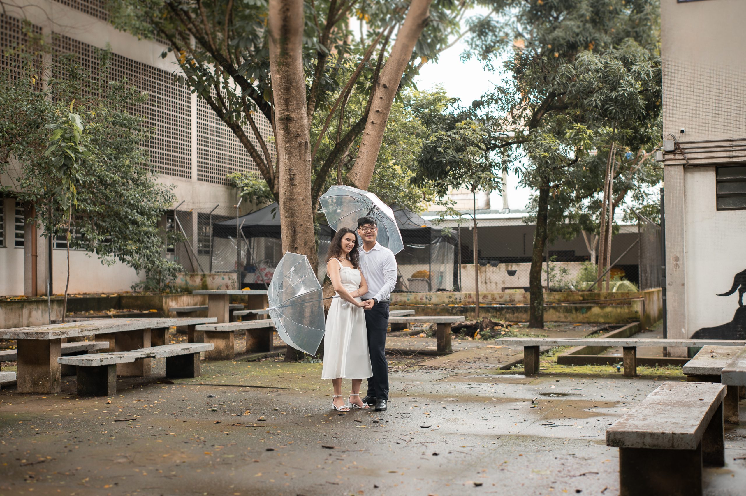 Contam que em 2014 foram selecionados para o programa Ciências sem Fronteiras. “Juntos, fizemos um intercâmbio no Canadá por cerca de 14 meses, experiência que marcou nossa trajetória, tanto do ponto de vista acadêmico quanto pessoal, e contribuiu para nossa formação e entrada no mercado de trabalho”, conta Vanessa. “Ao longo desse caminho, muitas vezes achamos que nossas trajetórias iriam se separar, na faculdade, no intercâmbio ou no trabalho, mas, de alguma forma, o destino sempre acabou nos reunindo”. Enquanto relembram os dias de escola e o futuro que foram delineando, a fotógrafa Hellen Figueira e a videomaker Lidiane Itonaga estão atentas a todos os detalhes e percorrem com o casal os espaços em que transitavam.