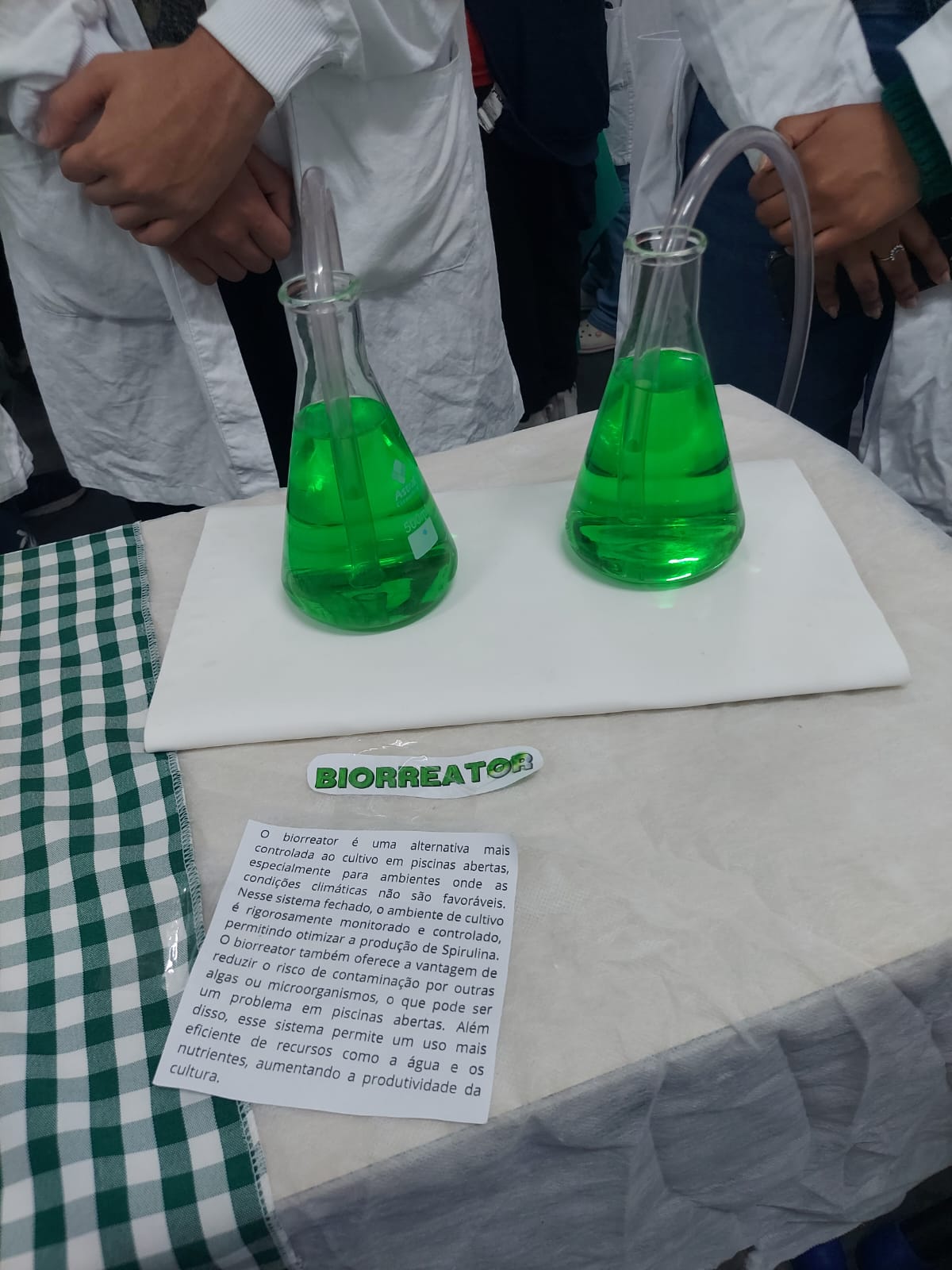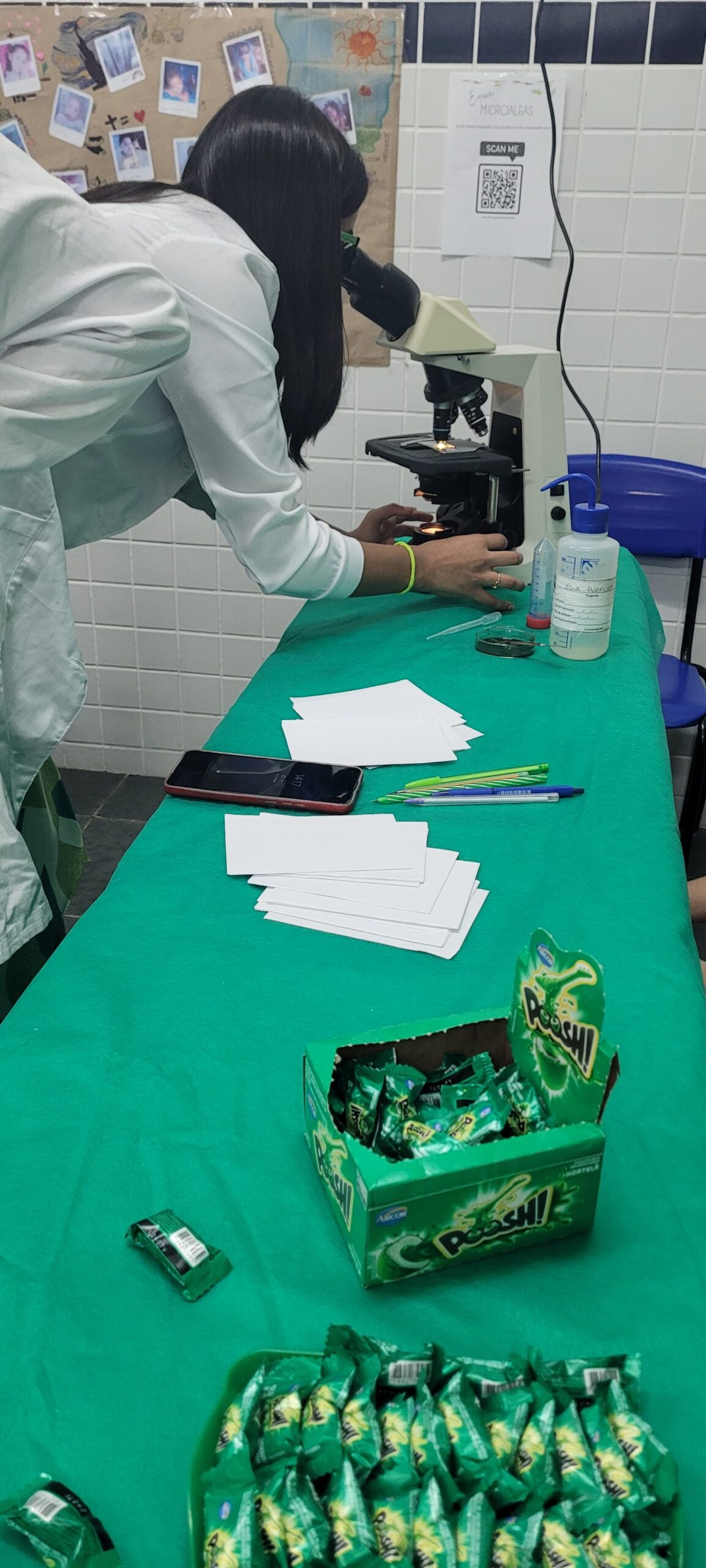 Os alunos participaram de atividades práticas, como observação no microscópio, separação de pigmentos por cromatografia e construção de protótipos de sistemas de cultivo (tanque aberto e reator fechado). Os jovens realizaram, também, pesquisas bibliográficas e criaram materiais interativos, como jogos, vídeos, cartazes e quizzes, culminando na realização de uma feira aberta à comunidade escolar.