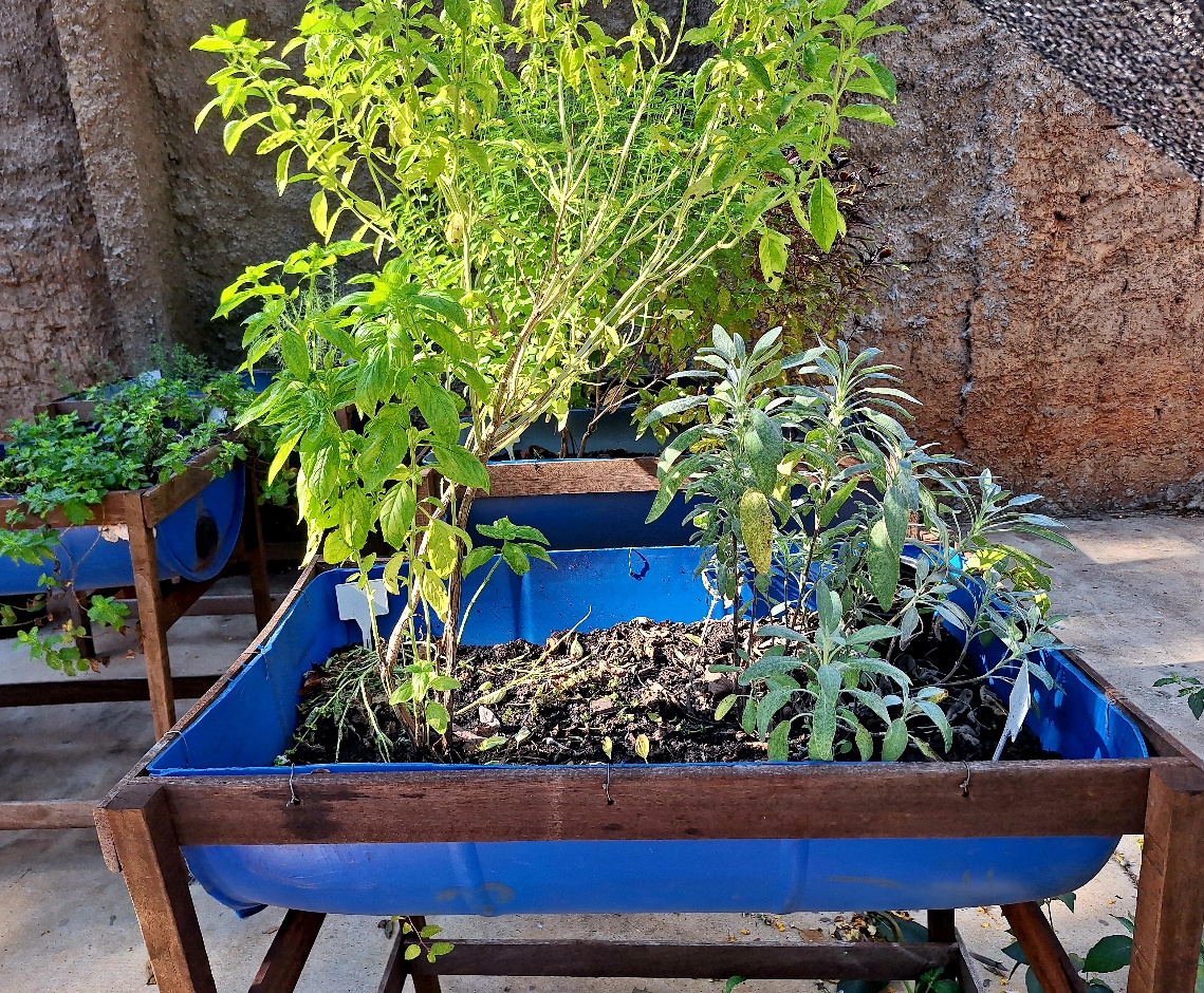 Instalada em um modelo suspenso, adaptado à estrutura cimentada do prédio, a horta ocupa bombonas reaproveitadas, vasos e canteiros no solo. A participação é aberta a toda a comunidade acadêmica, que pode colaborar com doações de mudas, insumos ou compartilhamento de saberes sobre o uso das plantas no dia a dia.