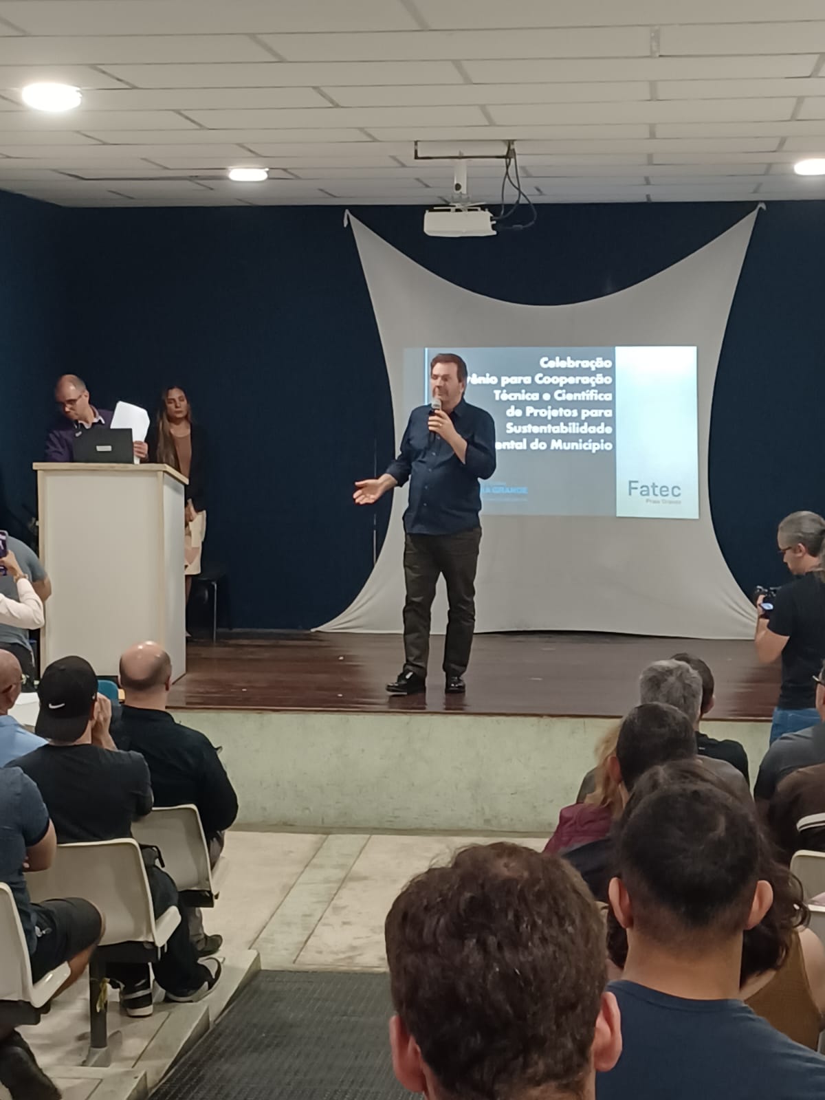 Na noite de terça-feira (3), foi celebrado um termo de cooperação técnica entre a Faculdade de Tecnologia do Estado (Fatec) Praia Grande e a prefeitura local. Realizada no auditório da unidade, a cerimônia marcou o início do projeto Praia Grande Sustentável, uma parceria voltada à promoção de pesquisas, diagnósticos técnicos, ações educativas e propostas inovadoras para transformar a realidade ambiental do município, com foco na resiliência climática e na melhoria da qualidade de vida da população.