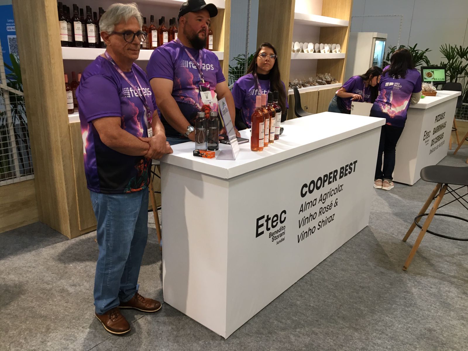 O Mercado Tec conta com dez estandes. A Etec Benedito Storani, de Jundiaí, por exemplo, trouxe para a Feteps alguns artigos produzidos nos laboratórios do curso técnico de Viticultura e Enologia. “Estamos com duas qualidades de vinhos, o Shiraz e o Rosé, desenvolvidas pelos estudantes do curso de Viticultura e Enologia. Também temos a geleia de vinho e o suco de uva integral, ambos desenvolvidos pelos alunos de Agropecuária”, explica o coordenador do Centro de Enologia da Etec, Eduardo Alvarez.