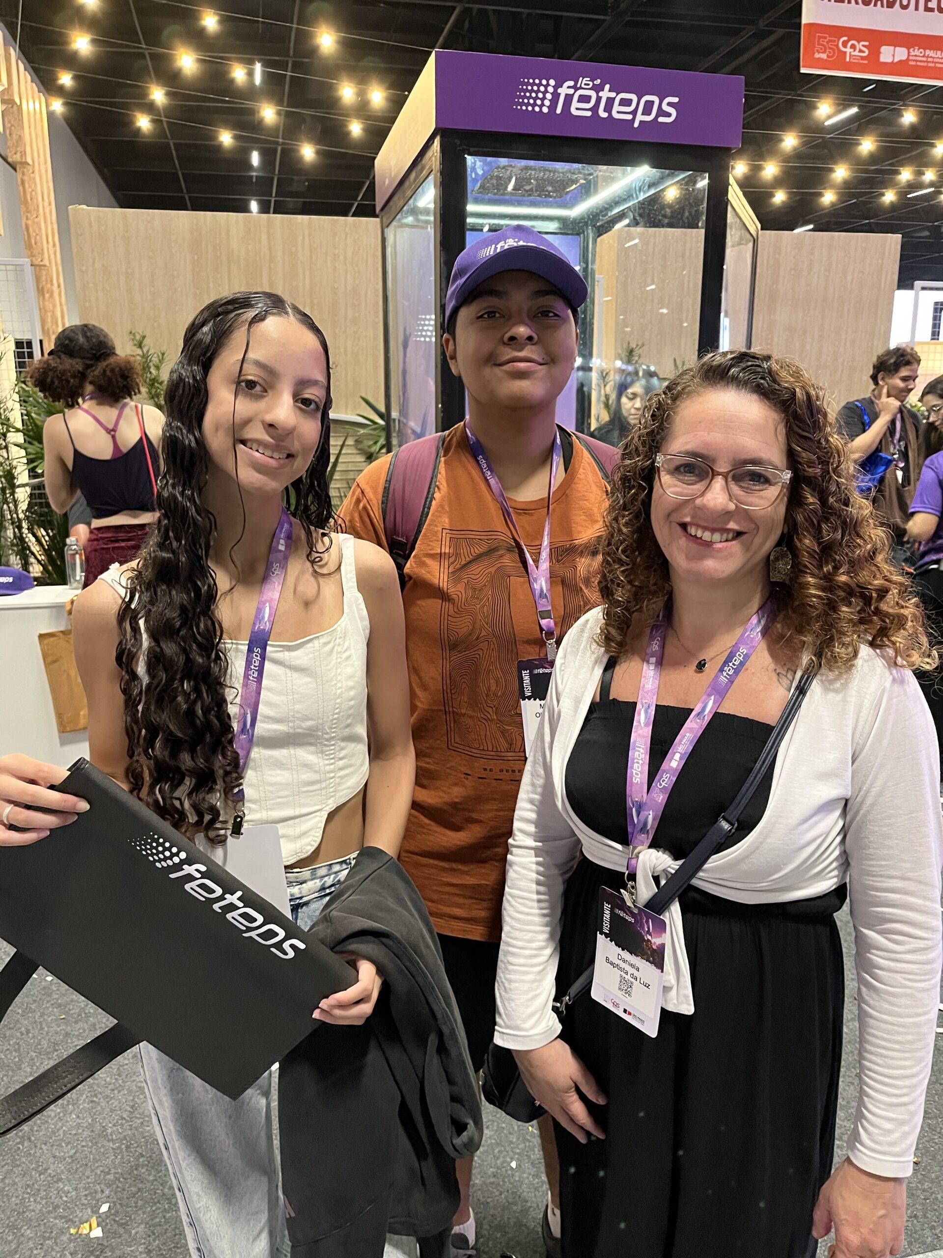 É a primeira vez também do MercadoTec em uma Feteps. “É tudo interessante”, diz Melissa, acompanhada da colega de classe Victória Baptista da Costa e de sua mãe, Daniela Baptista da Cruz. Ex-aluna da Etec Jaraguá, da Capital, Daniela parece tão entusiasmada quanto as meninas. “Ainda vamos circular mais, está fácil identificar os expositores”, elogiou.