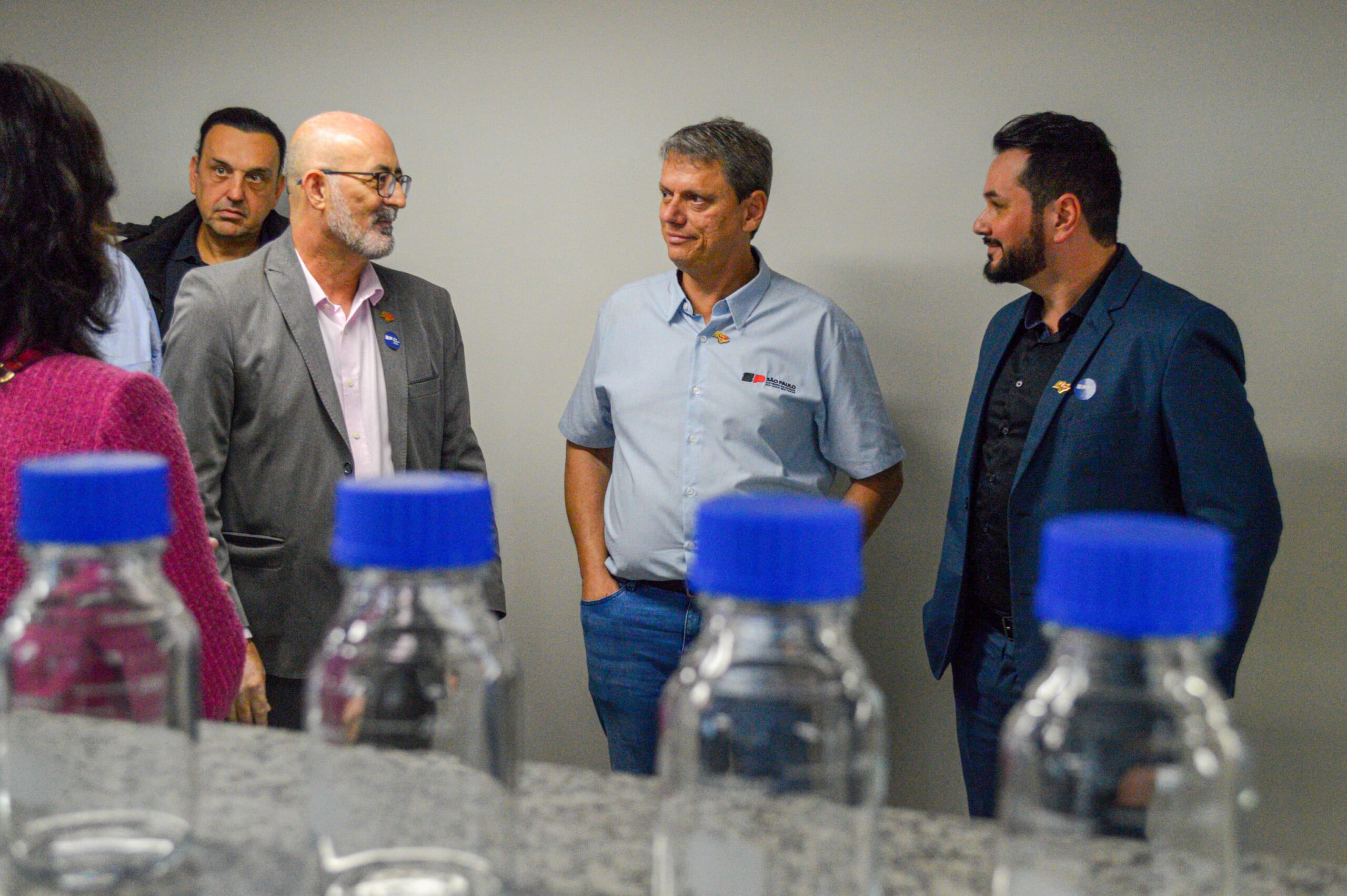 Governador Tarcísio de Freitas com equipe do Centro Paula Souza durante cerimônia de inauguração em Boituva | Foto: Roberto Sungi