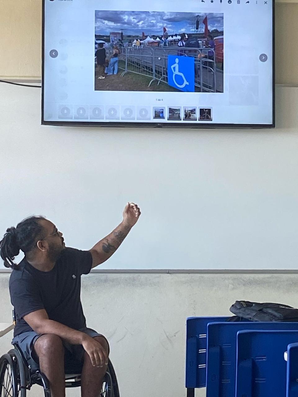 O coordenador do curso de Eventos, professor Marcos Júlio, reforça esse compromisso com a inclusão: “O Levi participa ativamente das aulas e dos projetos, trazendo à tona temas importantes relacionados à sua vivência. Nosso curso é diverso, com estudantes de todas as idades e perfis. Isso cria um ambiente de respeito e aprendizado mútuo. Fazemos adaptações físicas e pedagógicas para que ele tenha toda a condição de acompanhar o conteúdo e se sentir parte da turma.”