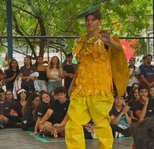 Durante semanas, os estudantes se organizaram em grupos para desenvolver peças de vestuário e acessórios, utilizando materiais como papelão, garrafas PET, tampas plásticas, retalhos de tecido e lonas reutilizadas. Cada modelo foi apresentado junto de um relatório técnico, com informações sobre tempo de decomposição e índices de reciclagem dos materiais no Brasil.