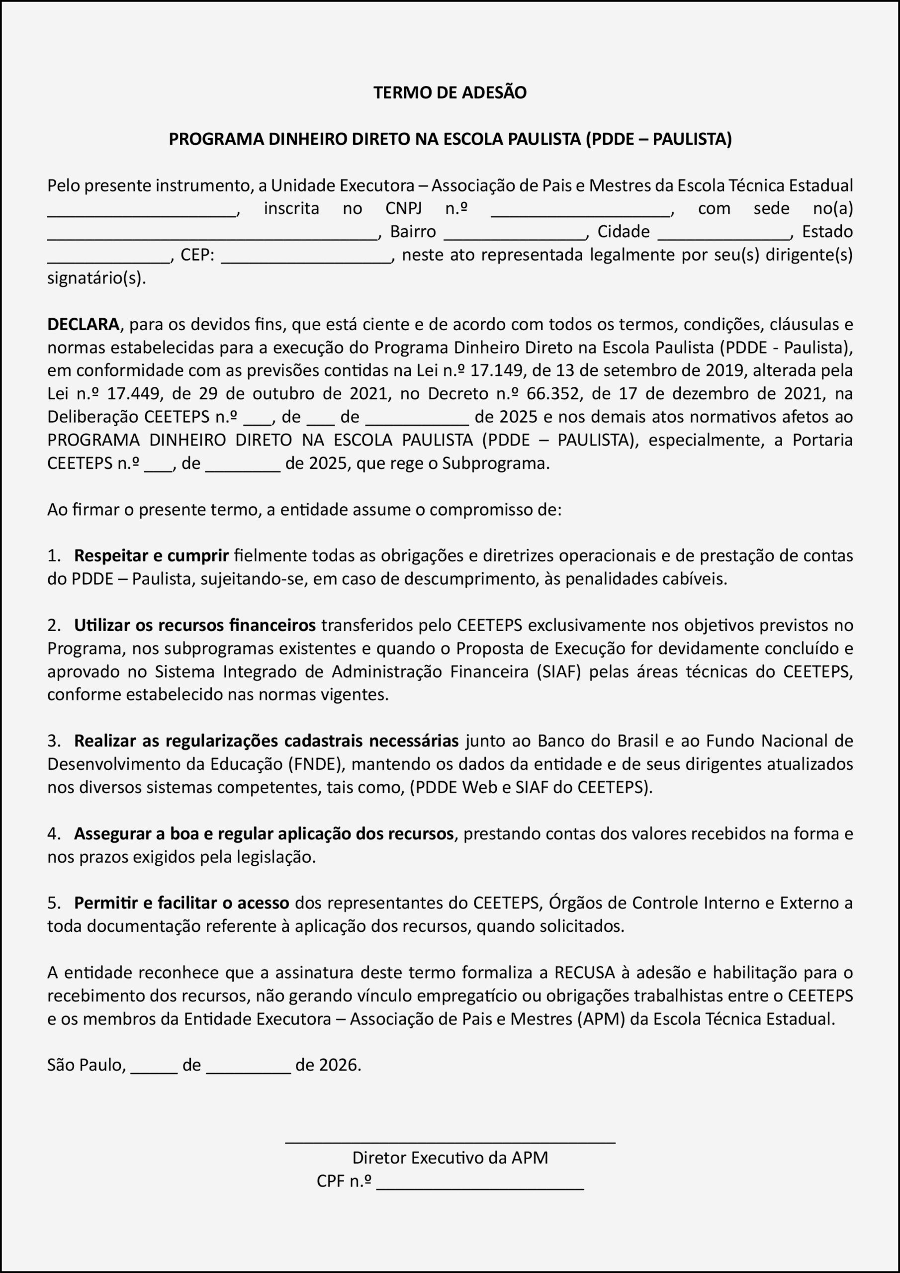 Termo de adesão – emite diretamente do SIAF, assina no GOV BR e faz upload