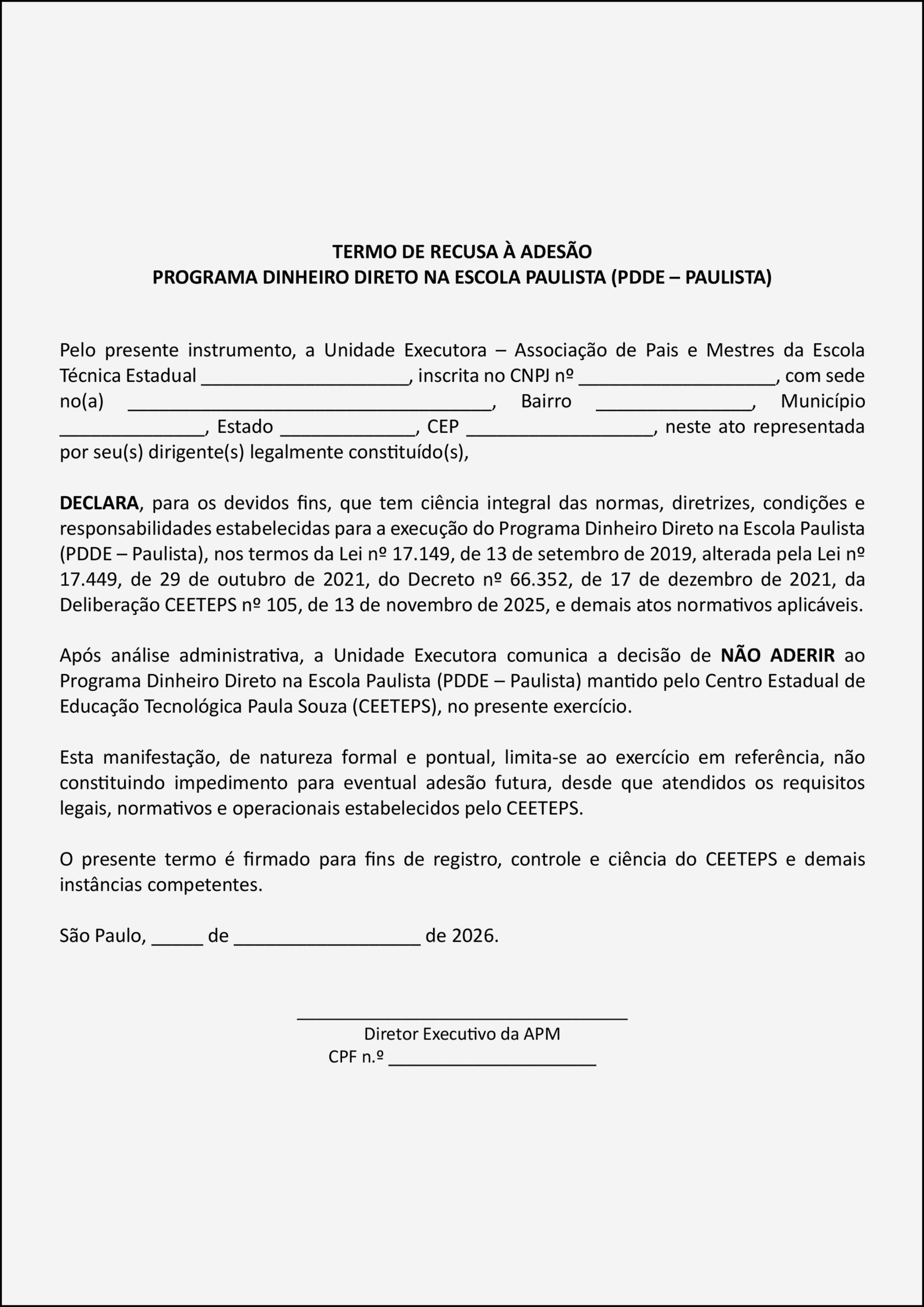 Termo de NÃO adesão – emite diretamente do SIAF, assina no GOV BR e faz upload.