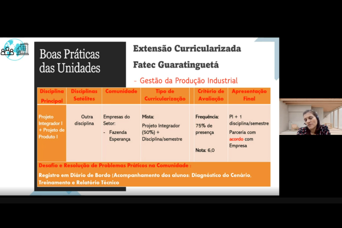 Na sequência, André Braun apresentou diretrizes e experiências relacionadas aos projetos de extensão desenvolvidos nas Fatecs. Ele também reforçou o papel do recurso como ferramenta para aproximar os estudantes da sociedade local e estimular a resolução de problemas reais em parceria com empresas e comunidades. “O currículo dos estudantes torna-se personalizado, com o envolvimento na solução de demandas existentes em seu território. Na Educação Profissional e Tecnológica, nossa missão é olhar para as competências no mundo do trabalho”, destacou.