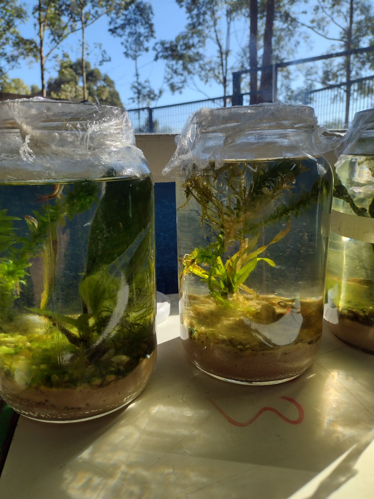 No projeto, os estudantes planejam, montam e monitoram os sistemas utilizando materiais recicláveis, como vidros reaproveitados. As espécies cultivadas incluem plantas ornamentais, como bambu japonês e jiboia, e alimentícias, como batata-doce e agrião. Já os peixes criados são espécies adaptadas ao ambiente, como tetras e barrigudinhos, nativos da fauna local.