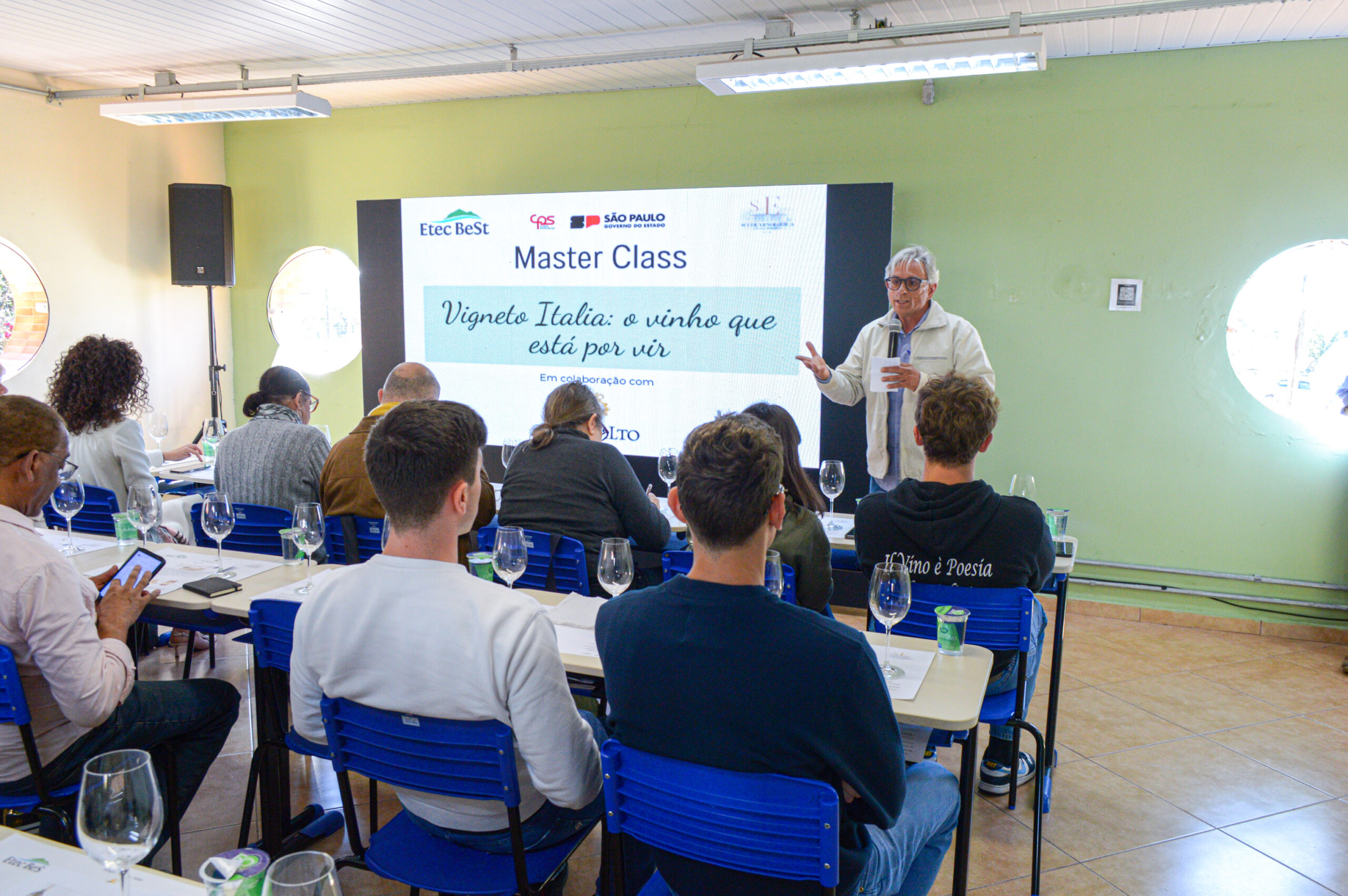 Para celebrar a chegada da nova cultivar, o Vigneto Italia realizou nesta terça-feira (29), uma masterclass técnica com degustação orientada dos vinhos Collalto – Incrocio Manzoni Bianco 6.0.13 e Collalto – Incrocio Manzoni Rosa 1.50, cujas mudas serão plantadas no parreiral da Etec.